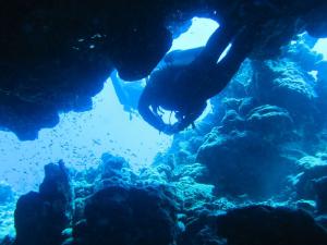 Отдельно хочется отметить поездку в Dahab. Там были два сайта: Canyon и Blu Hole. Выезд из отеля состоялся в 6 утра, все были сонные и не очень довольные ранним выездом. Но впоследствии, все поняли, почему так рано и поблагодарили Елену . На первый сайт мы вышли в снаряге уже в 8 утра. В Canyon входили вторыми, поэтому не пришлось ждать своей очереди и расходовать лишний воздух, в ожидании выхода предыдущей группы. Canyon оказался безумно красивым, пройдя по нему в рамках допустимого по квалификации дайверов, мы начали выход. Когда вышли из каньона, то миллионы пузырьков поднимались сквозь песок и кораллы, это завораживало своей красотой и величием. Возвращаясь к месту входа, навстречу нам шли три группы, а выйдя на берег, увидели еще примерно групп семь готовившихся к входу в воду. Быстро разобрав снарягу и погрузив ее в машину, мы переехали к Blu Hole. Там мы спокойно позавтракали и собрали снарягу для еще одного удивительного сайта. Спустя два часа, мы начали собираться. Что можно сказать о Blu Hole. Восторг. Красота, которую не описать словами, это надо видеть. Все кто был на данном сайте, после выхода из воды и, разобрав снарягу, устроились в местном кафе и начали обмениваться впечатлениями. Потом были приятные часы в кафе Alcapone, заказав свежее выловленную рыбу, мы наслаждались увиденным и новыми впечатлениями. Вечером, мы уставшие и довольные, досвиданья Dahab, выехали в отель.