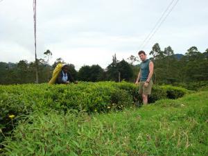 По дороге искупались в одном из водопадов, правда оказалось, что это там не принято. Помогали собирать чай на плантациях.