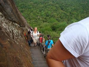 Сигирия. Древний город и дворец на скале, в джунглях 4-5 век. Обнаружен в 19 веке. Сейчас находится под охраной юнеско. Писать особого смысла нет, т.к. невозможно передать монументальность сооружения и ощущение от подъема на 200м. высоту по узким ступенькам. Если кто-то туда соберется, учтите, что нагрузка на ноги приличная (занимайтесь спортом), подъем длинный + солнце. Интересная история про зеркальную стену (кое-где она сохранилась). С вершины дворца вообще нереальный вид – до горизонта джунгли, а посреди леса возвышается огромный белый Будда..