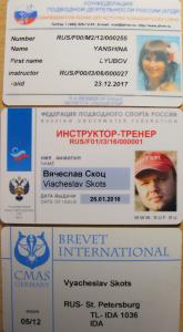 Задняя сторона карточек КПДР и ФПСР абсолютно одинаковые. Отличаются только лицевой стороной. Но от этого суть не меняется . В Мире абсолютно не важно с какой карточкой нырять. Важен уровень сертификации. Выкладываю инструкторские карточки КПДР,ФПСР,Немецкий CMAS.