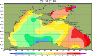 Добавлено: Ср Июл 06, 2016 20:09 Заголовок сообщения: Черное море - температура на поверхности воды |