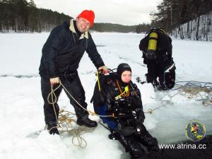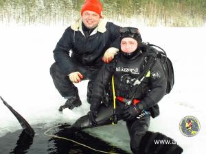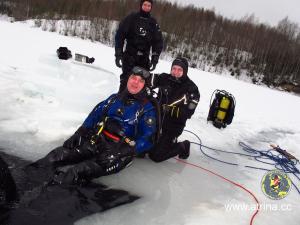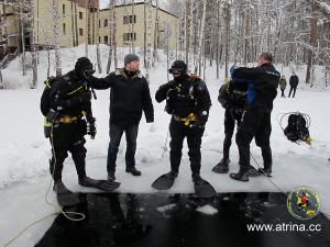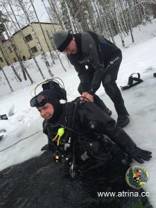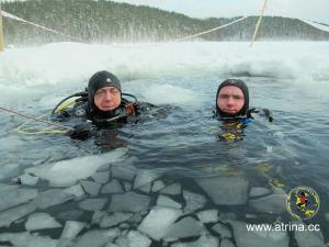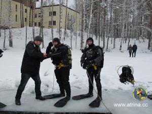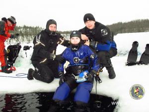 Все студенты сделали по два погружения. Сдали практический экзамен по курсу сухого костюма и по курсу подлёдные погружения!