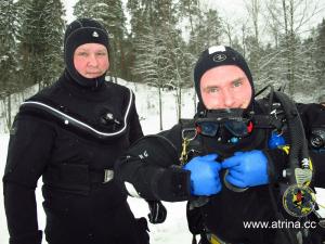 Все ныряли в сухих костюмах. Кто-то проходил курс сухаря и подлёдных погружений, а кто-то нырял для себя в удовольствие.