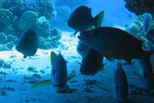 Температура воздуха была в пределах +37, воды +28,5, а видимость - не менее 20 метров на всех сайтах, кроме Смол Гифтуна.