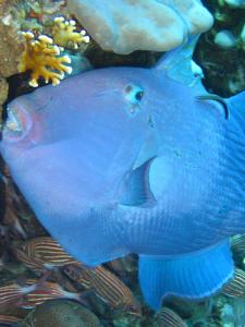 Рыба обычная, просто ракурс такой выбран, да плюс еще наверное за счет оптики такой эффект получился.... Если бы Вы на самом деле такую рыбу встретили, то позировать бы никто не стал - в миг все разбежались бы Smile
