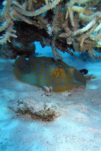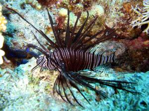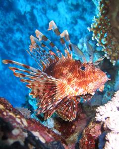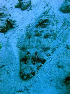 И выбеленный вспышкой коралл удачно заменен! Теперь он перестал отвлекать внимание и взгляд зрителя без помех "привязывается" к глазу крылатки.