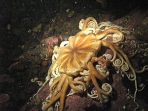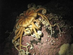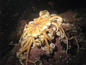 Лет десять тому назад мы с двумя Сергеями (Волков и Коваль) в р-не острова Утичий, на глубине 25 метрв, увидили одну штуковину. Позже я узнал что это звезда под названием Горгонария.