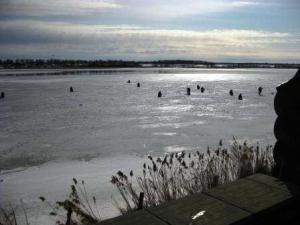 Переоделись и двинули к воклине. Она не замерзает в любой мороз. Погода тоже порадовала, светило солнце в полный накал. Дошли до кромки льда. Кромка очень прочная, не обваливается, что очень порадовало. Глубина под кромкой, где-то метра полтора. До воклины пришлось добираться метров 30 вплавь.