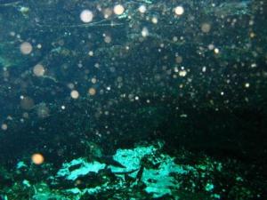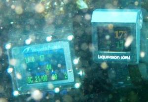 Температура воды, на момент погружения, 19 марта, по компъютеру и боттом-таймеру, была 7-8 градусов Цельсия. Возможно, это является причиной быстрого таяния льда. Вопрос только, откуда там такая температура, она всегда была и зимой и летом 4-5 градусов?