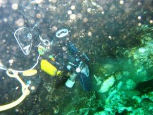 1. старая воклина, забитая бревнами и землёй, раскрылась. отверстие - около двух метров, сужающееся на 2-х метрах глубины до метра в диаметре, ниже - пещерка диаметром метра 2, с одной стороны - завал из бревен и земли, через который и поступает поток воды. Володя хода дальше не увидел, хотя по периметру вращался в этой дыре, вверх ногами, в идеальном G-триме. залезать внутрь не рискнули без страховочного конца, муть поднимается мгновенно, а мы - старые (трусливые) водолазы. :D
