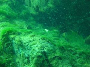 Я, ещё после отчетной поездки, совершил ещё одну, в апреле, не вытерпел. Ездил один, нырял в мутняке, с лодки, т.к. льда уже не было. Погружение вышло потрясающим. После примерно метра мути, вдруг резко входишь в идеально прозрачную среду, а вверху, над тобой, багровое солнце. Не обошлось и без приключений. На захват меня приехали две машины копов (действовал запрет на лодки). Но всё разрешилось нормально, люди попались адекватные. Отчет выкладывать не стал, т.к. было не о чем. Как я и предвидел процесс шел и шел интенсивно. Вход за четыре недели значительно изменился.