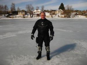 Я за всеми хлопотами и заботами, лоханулся и залил костюм, но желание осмотреть вход превысило. Нырял в залитом костюме. Выдержал, правда, минут 10, при 6 градусах, но зато с удовлетворением отметил - процесс расширения входа идет.