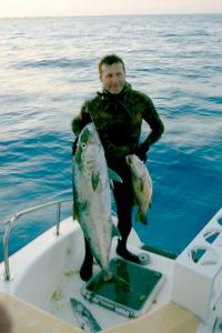 Потом уже с верой в вечерний ужин продолжили охоту. Правильность выбора маршрута подтвердилась результатами подводной охоты, постоянно кто-то нарывался на трофей и брал его или рассказывал об упущенных шансах. Девиз брать только «филей» стал для команды чистящей рыбу весьма актуален. Наши рыбаки даже зачищали рыбу по новой, вырезая новые куски «филея» в уже вроде бы почищенных трофеях. Хотя команда не показывала этого и всячески улыбалась и приветствовала наши новые успехи, становилось всё заметнее, что эта рыбалка не всем нравится. Наши рыбаки уже сами потрошили свой улов. Брали только маленьких барракуд. Нарезали их на ленты, присаливали, вялили и на следующий день к пиву альтернативой были только лангусты. В общем, погнили немного, как смогли! Жаль что сафари слишком короткое оказалось. Обратно капитан так спешил, что забирая нас из воды, торопясь с переходом на ночную стоянку чуть одного не оставили на необитаемом острове Кубы. Остальные, правда, подозревают, что товарищ сам хотел остаться. Даже бутылочку с пресной водой к буйку привязал и предусмотрительно не взял фонарик - неспроста! Но справедливость восторжествовала, и мы вернулись за ним практически сразу. Ведь недаром говорится, когда одному хорошо остальным обычно не очень!! Создание устойчивых пар по принципу проживания в каютах или плавание в парах помогает исключить такие варианты. В дайвинге намного проще пересчитал баллоны и порядок. А здесь ружья или гидрики бесполезно пересчитывать. У каждого их несколько на разные случаи жизни. Бегать по чужим каютам, искать кто, где зашкерился? Главное без спешки чтобы все убедились, что у каждого сокамерник или сосед на месте.