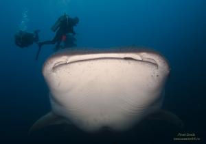 Акула рядом была снимков 5 успел сделать пока она проплывала, объедаемая губанчиками, этот снимок самый удачный по растоянию до объекта. Прошла она в метре от меня наверно, точне я подплывал к ней пока она плыла вдоль рифа.