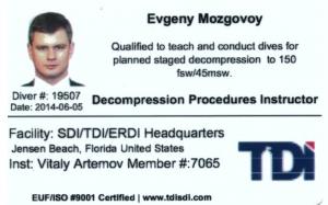 ИЛЬИНА ИЛЬЮ - дайвмастера SSI # 65287