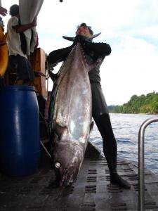 Добыча рыбы!!! Тем более что после сафари подводных охотников по морю Банда было дайверское сафари нашего клуба на Папуа. Так специально было спланировано чтобы всех желающих накормить свежей рыбой в часности тунцом. Скажу чесно, с большой неохотой кок расставался с запасами тунца которые были заготовлены. Но рыбы поели вдоволь. Ещё замечу что мясо тунца это уже не рыба, а настоящее мясо!!!