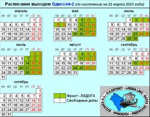 Обновленное Расписание выходов "Одиссея-2" (на 22 марта 2023г.)