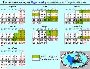 Обновленное Расписание выходов "Одиссея-2" (на 01 марта 2023г.)