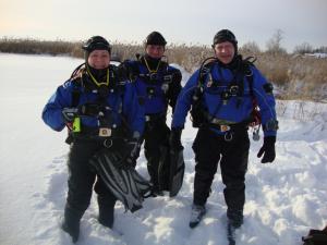 Я, свои, с помощью Владимира, отогрел и скинул скубу на сани.