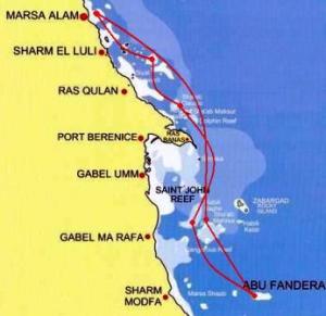 цепочка маршрута следующая : Хургада - Чек дайв на тоби Арба например - Salem Express - Elphinstone - Saint John's или Zabargad-Rocky (не решили пока) - Аbu Fandera -возвращение в Марса Алам или Порт Галиб - ночёвка на Яхте с 1-2 ноября - 2 ноября трансфер в аэропорт и вылет в Санкт-Петербург.