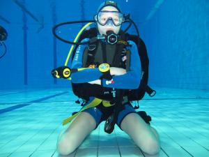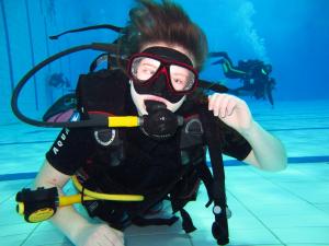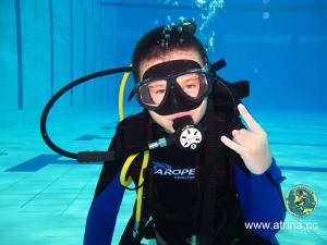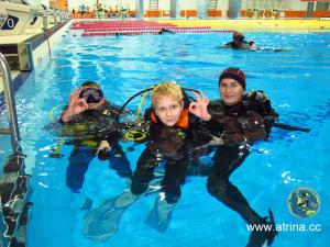 Поздравляем Анастасию (10 лет) с первым пробным погружением с аквалангом в бассейне, которое она совершила 20.09.16 в бассейне на Джона Рида д.8.