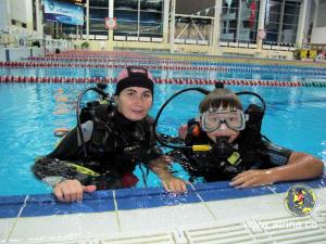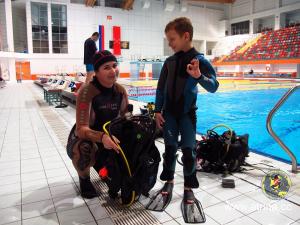 Поздравляем Ивана (10 лет) с первым пробным погружением с аквалангом в бассейне "Экран".
