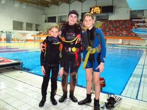 А также с успешным завершением курсов Scuba Ranger Юрочку (9 лет) и Таисию (10 лет) . С завершением курса Indoor Diver - Ярослава (10 лет)