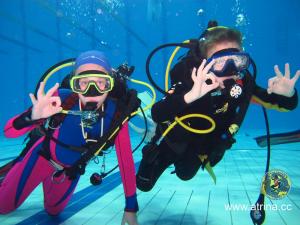Поздравляем Александру и Софию с погружением в глубоком бассейне 5.5 метров.