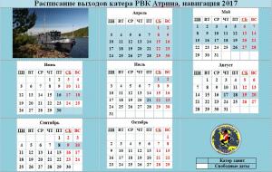 Актуальное расписание выходов катера РВК АТРИНА на 2017 год!!!