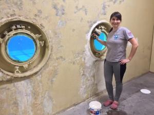 Бассейн оборудован иллюминаторами на глубине 2,5 метра.