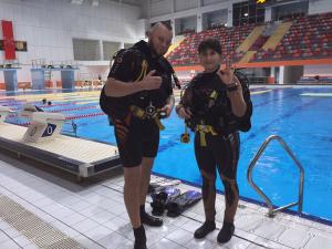 В марте завершили занятия по курсу "Продвинутый дайвер" CMAS ** в бассейне с Марией и Александром.