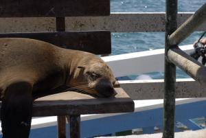Далее группе предстоял перелёт в Гуаякиль с посадкой в Бонейро, т.к полёт проходил ночью все успели выспаться. В аэропорту города Гуаякиль мы сделали пересадку на Галапагосы, где нас ждал не быстрый трансферт в виде рейсовых автобусов, за 10 минут нас доставили на пристань, где как «бездомные собаки», оккупировав всю пристань, включая лавки, лежали КОТИКИ.