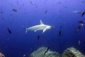 Пробудившись от сна уже на нашем кораблике «Мистраль-2», мы вышли на погружения о которых долго мечтали, первый дайв сайт назывался «NORTH SEYMOUR» и тут же встреча с черепахами, акулами- молотами, серыми акулами, скаты-Орляки.