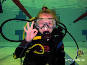 Поздравляем Настюшу (13 лет) с первым пробным погружением с аквалангом в бассейне!!!