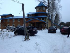 База расположена на 18 км той же трассы, по направлению " Поляны" слева от дороги. Здание с синей крышей и башенкой. Озеро то-же. Проход к озеру через дорогу. До озера 126 шагов. Есть автомобильный подъезд. Неудобство прохода через дорогу временное. Весной планируем разместить оборудование на своей плавучей платформе.