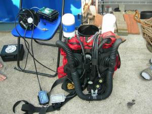 Хочу сделать лирическое отступление про оснащение для дайвинга. Несколько последних поездок в Финляндию и Скандинавию сформировали впечатление, что тамошние нырялы в массовом порядке переходят или перешли на двухбаллонную конфигурацию с двумя регуляторами, двухметровым шлангом и канистровым фонарем. Может где-то это и излишне, а на Аландах – в самый раз. Условия для погружений там непростые. В некоторых местах сходство с погружениями в Ладогу удивительное. Только вода не желтовато-торфяная, а зеленоватая и естественный свет заканчивается не с 6-8 м, а с 10-12. Внизу вода холодная – 7 градусов. Повыше – теплая, вплоть до 14градусов на поверхности.