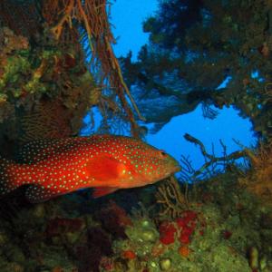 Коралловый группер в дневном укрытии.