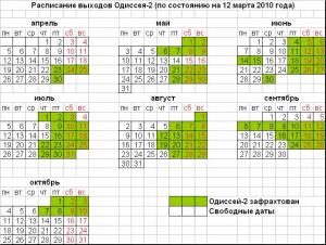 Заголовок: Расписание выходов Одиссея-2 (сезон 2010г.) на 12.03.2010