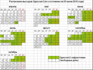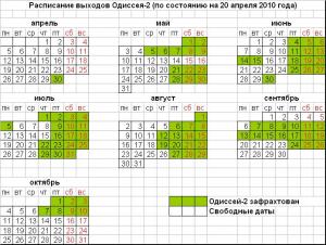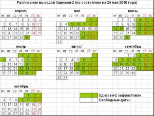 Заголовок: Расписание выходов Одиссея-2 (сезон 2010г.) на 20.04.2010