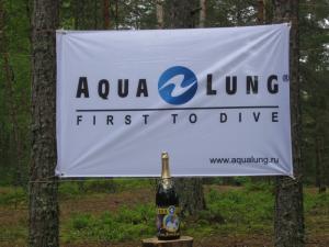 Празднование проходило на озере Берестовом. Участники открыли бутылку юбилейного шампанского, специально изготовленного к годовщине, прочитали, что написано на этикетке, сфотографировались на фоне флага AQUA LUNG, ну и вдоволь поныряли.