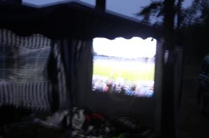Несколько нормальных людей посмотрели с удовольствием матч. Я, например, выпил две банки пива, остальные примерно столько же. Не орали, уровень звука - чтобы было слышно нам. Не смотревшие футбол сидели практически рядом у костра с гитарой, мы им не мешали.