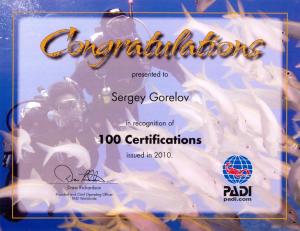 Обычный сертификат от ПАДИ. Инструктор выдал 100 карточек за 2010 год. Выдать то выдал, а вот кто учил? Сдается мне что учил нанятый персонал, а кто то подписывал документы. Неужели Сергей ты всех один подготовил? Или кто то помогал?