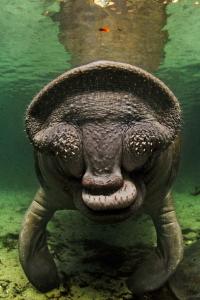 На снимке как раз запечатлен момент, когда ламантин вытянул свой "хобот" в сторону фотографа.
