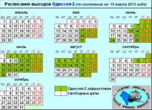 Актуальное расписание выходов ОДИССЕЯ-2 (на 15 февраля 2013 года)