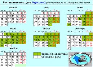 Обновлено актуальное расписание выходов ОДИССЕЯ-2 (25 марта 2013 года)
