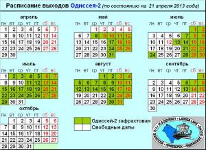 Обновлено актуальное расписание выходов ОДИССЕЯ-2 (21 апреля 2013 года)