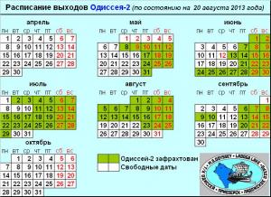Обновлено актуальное расписание выходов ОДИССЕЯ-2 (20 августа 2013 года)