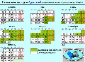 Обновлено актуальное расписание выходов ОДИССЕЯ-2 (24 февраля 2013 года)