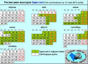 Обновлено актуальное расписание выходов ОДИССЕЯ-2 (21 мая 2013 года)
