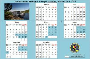 Обновлено актуальное расписание выходов катера РВК Атрина (на 14 июля 2014 года)